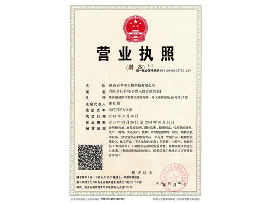 陜西百草萃生物科技有限公司,位于陜西省咸陽市秦都區(qū)濱河西路1號大秦御港城,公司成立于1996年,主要從事天然植物種植、研發(fā)、生產(chǎn)、加工、銷售為一體的高科技企業(yè)。主營醫(yī)藥原料、保健品原料、化妝品原料,精細(xì)化工原料。公司致力于人類健康保護事業(yè)“ 以科技為動力,以質(zhì)量求生存” 的本質(zhì),依托陜西高新科技技術(shù)人才和科研優(yōu)勢,已形成多學(xué)科、全方位、高層次的技術(shù)管理精英團隊。充分利用秦巴山區(qū)的天然藥物資源,歷經(jīng)多年發(fā)展為打造百草萃生物品牌奠定了基礎(chǔ)。